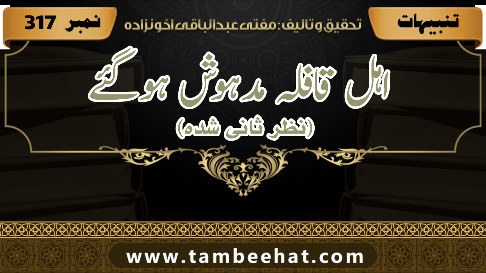 تنبیہ نمبر: 317 پر نظر ثانی کی ضرورت ھے۔ نفس واقعہ بسند صحیح متعدد کتب میں مذکور ہے۔